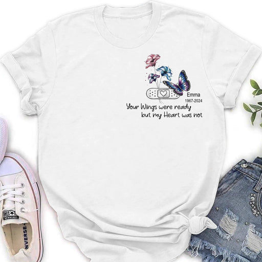 Personalized Memorial Butterfly Shirt/Hoodie - Gift Idea For Loss Of Family Member - Your Wings Were Ready But My Heart Was Not