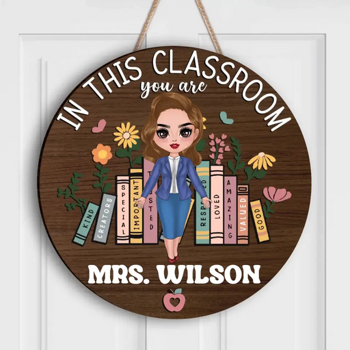 Personalized Teacher Wooden Sign - Teacher Gifts Idea - Classroom Door Hanger - In This Classroom You Are