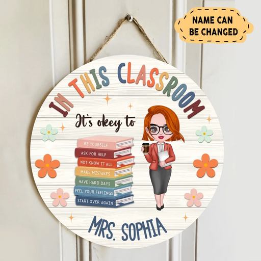 Personalized Teacher Wooden Sign - Gift Idea For Teacher - In This Classroom It's Okay To