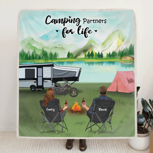Personalized Camping Blanket , Camping Lovers - Couple With Up to 5 Pets Camping Blanket - Gift Idea For Couple - Camping Partners For Life - 3KFOG2