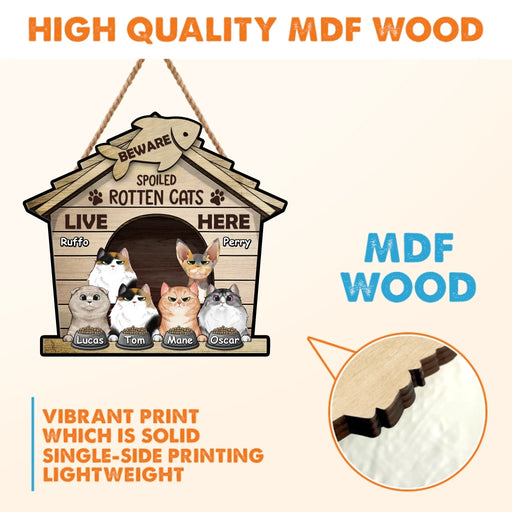 View full detailsPersonalized Cat's House Door Sign - Up to 6 Cats - Gift Idea For Cat Lover - Beware Spoiled Rotten Cats Live Here