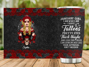 Custom Personalized Sugar Skull Tumbler - Skull Gift For Girl/ Birthday Gift - January Girl I Am Who I Am
