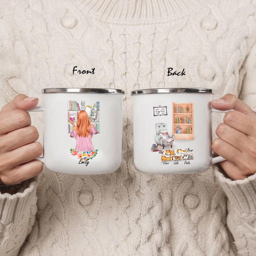 Personalized Reading Pet Mom Enamel Mug - Up to 5 Pets - Best Gift For Dog/Cat Lovers