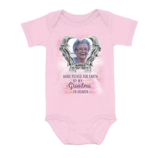 Personalized Memorial Photo Baby Onesie - Memorial Gift Idea For Father's Day/Mother's Day - Hand Picked For Earth By My Grandma In Heaven
