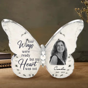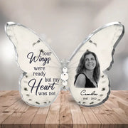 Personalized Memorial Photo Butterfly Acrylic Plaque - Memorial Gift Idea For Family Member/Mother's Day - Your Wings Were Ready But My Heart Was Not