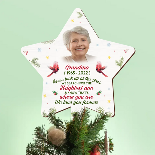 View full detailsPersonalized The Brightest Star Family Loss Tree Topper - Upload Photo - Memorial Gift Idea For Christmas - We Love You Forever