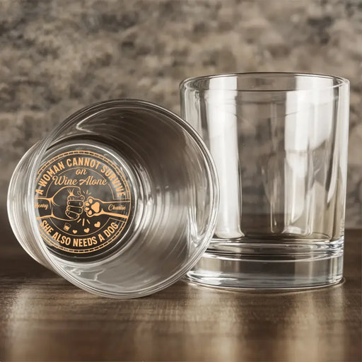 View full detailsPersonalized Dog Mom/Dog Dad Engraved Whiskey Glass - Gift Idea For Dog Lover - A Woman Cannot Survive On Wine Alone She Also Needs a Dog