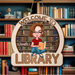 Personalized Reading Girl Wooden Sign - Gift Idea For Book Lover - Welcome To Library