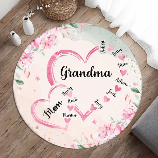 Personalized Grandma Mom Heart Floral Round Rug - Gift Idea For Grandma/Mom/Mother's Day - Up to 6 Kids And 12 Grandkids