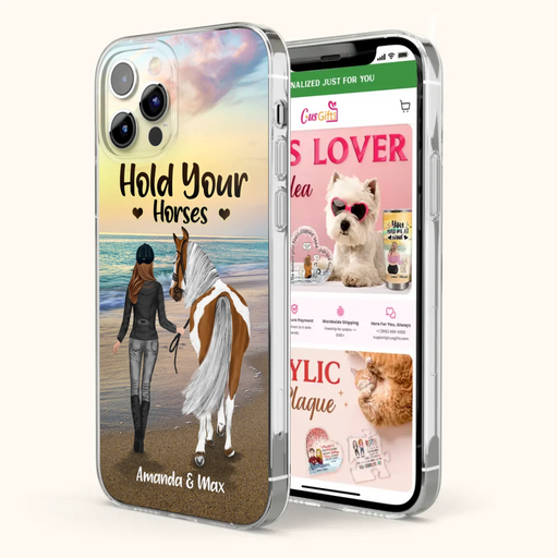 View full detailsPersonalized Horse Girl Phone Case - Girl with up to 2 Horses - Four Feet Move My Soul - QX6ZS1