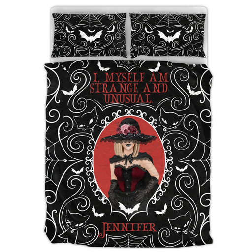 View full detailsPersonalized Gothic Girl Quilt Bed Sets - Halloween Gift Idea For Mom/Sister/Friend - I Myself Am Strange And Unusual