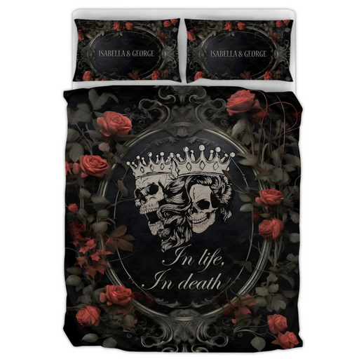 View full detailsCustom Personalized Gothic Skull Couple Quilt Bed Sets – In Life, In Death – Romantic Gothic Gift for Couples