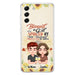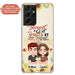 Custom Personalized Chibi Couple Phone Case - Gift Idea For Couple - Blessed By God, Spoiled By My Husband, Protected By Both - Case For iPhone & Samsung