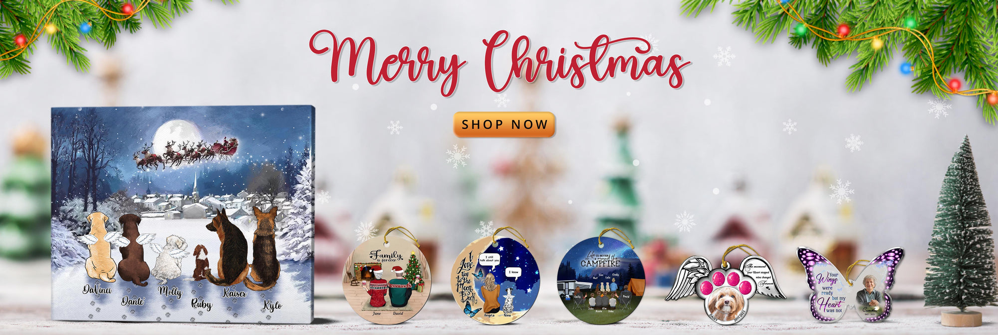 View full detailsPersonalized Xmas Pet Memorial Ornament - Up to 5 Dogs/Cats - Christmas Memorial Gift For Dog/Cat Lover