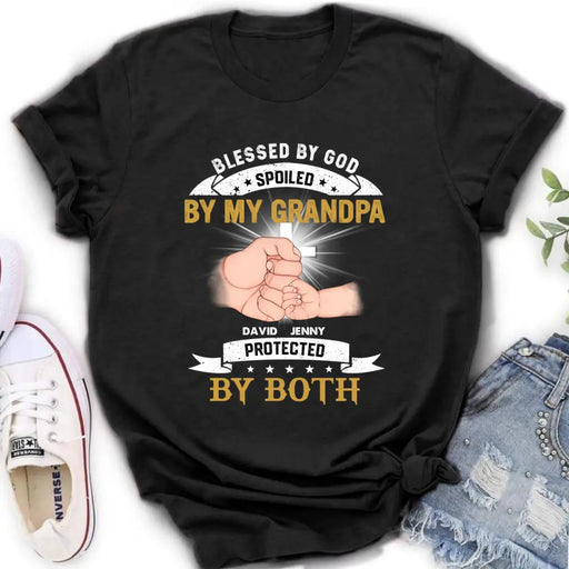 View full detailsPersonalized Grandkids Shirt/Hoodie - Up to 5 Kids - Gift Idea For Grandma/Grandpa - Blessed By God Spoiled By My Grandpa Protected By Both