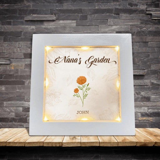 Personalized Nana's Garden Frame With Led - Gift Idea For Grandma - Up to 9 Grandkids