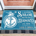 Personalized Mermaid & Sailor Doormat - Gift Idea For Couple - A Handsome Sailor And His Salty Mermaid Live Here