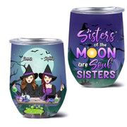 Personalized Witches Wine Tumbler - Gift Idea For Halloween/Friends with up to 4 Witches - Sisters Of The Moon Are Soul Sisters