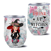 Personalized Witch Wine Tumbler - Halloween Gift Idea - Drink Up Witches