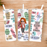 Custom Personalized Teacher Skinny Tumbler 20OZ - Best Gift Idea For Teacher/ Birthday - Teacher Assistant Daily Affirmations