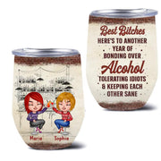 Personalized Xmas Friends Wine Tumbler - Gift Idea For Besties - Up To 4 Friends - Best Bitches Here's To Another Year Of Bonding Over Alcohol Tolerating Idiots & Keeping Each Other Sane