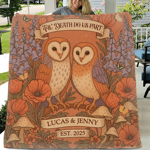 Personalized Owl Couple Cottage Quilt/Fleece Throw Blanket - Gift Idea For Couple - Til' Death Do Us Part