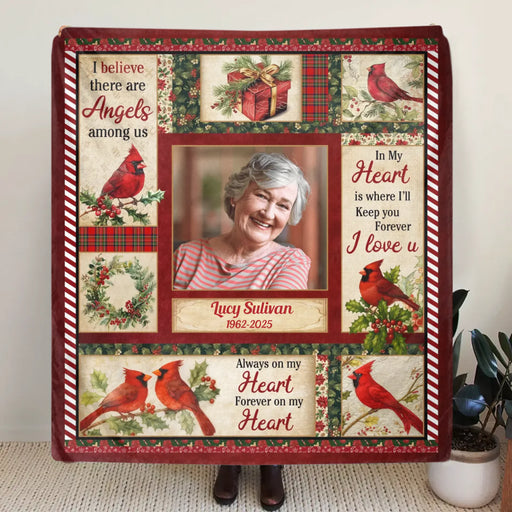 Personalized Christmas Memorial Fleece Throw Blanket / Quilt – In My Heart Is Where I'll Keep You Forever - Custom Photo Sympathy Gift for Loss of Loved One