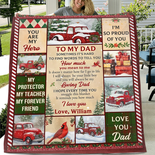 Personalized Christmas Fleece Throw Blanket / Quilt for Dad - To My Dad, You Are My Hero - Sentimental Holiday Gift from Children