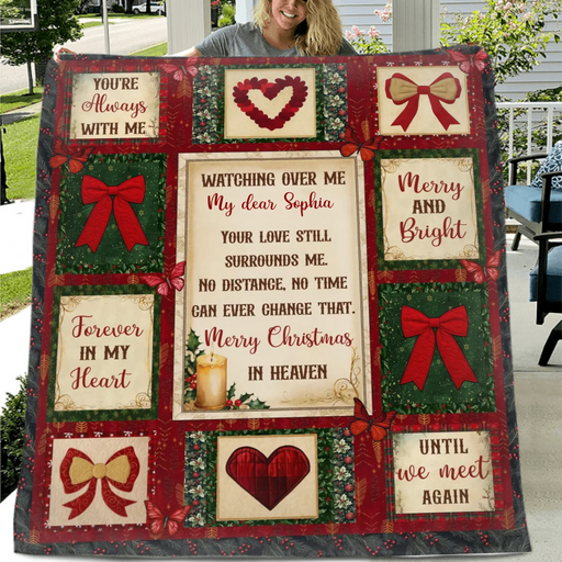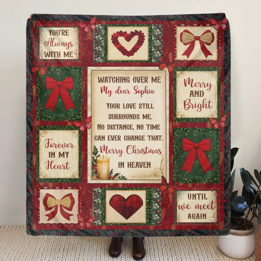 Personalized Christmas Memorial Fleece Throw Blanket / Quilt - Custom Name - Merry Christmas in Heaven - Sympathy Gift for Loss of Loved One