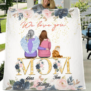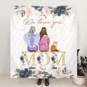 Personalized Mom & Kid Quilt/Fleece Blanket/Pillow Cover - Up to 2 Pets - Mother's Day Gift From Kid - We Love You