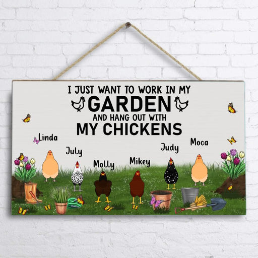 Personalized Doorsign - Gift For Chicken Lovers - I just want to work in my Garden and hang out with my Chickens - Up to 6 Chickens