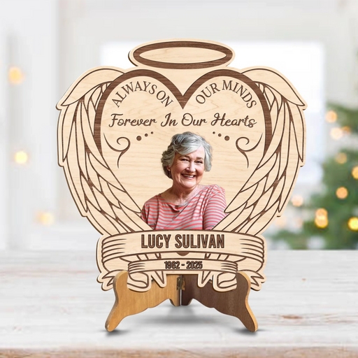 View full detailsPersonalized Wooden Memorial Art - Angel Wings Heart Design, Custom Photo, Name & Years - Always on Our Minds Forever in Our Hearts Sympathy Gift