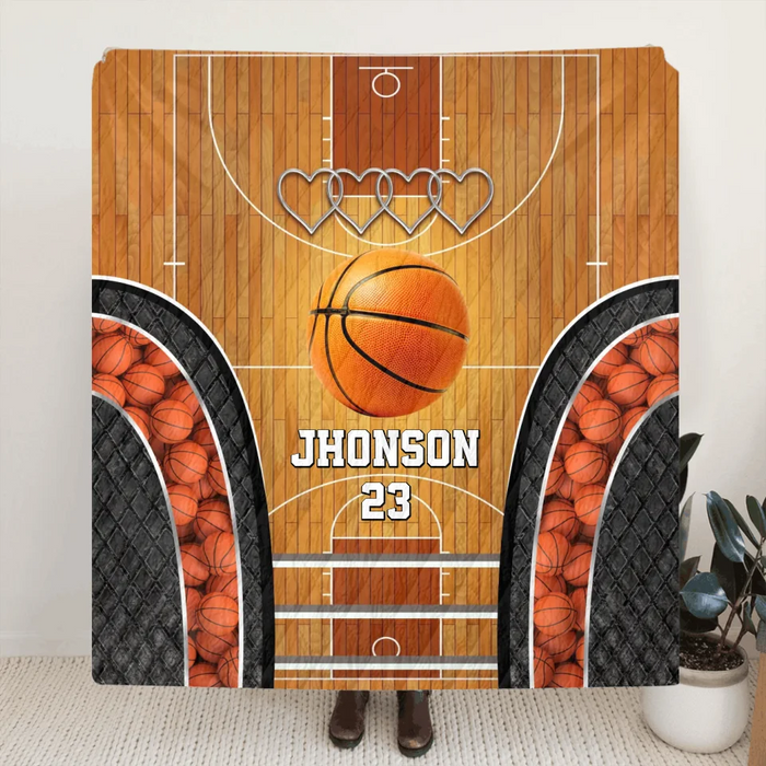 Personalized Basketball Quilt/Fleece Throw Blanket - Gift Idea For Basketball Lover