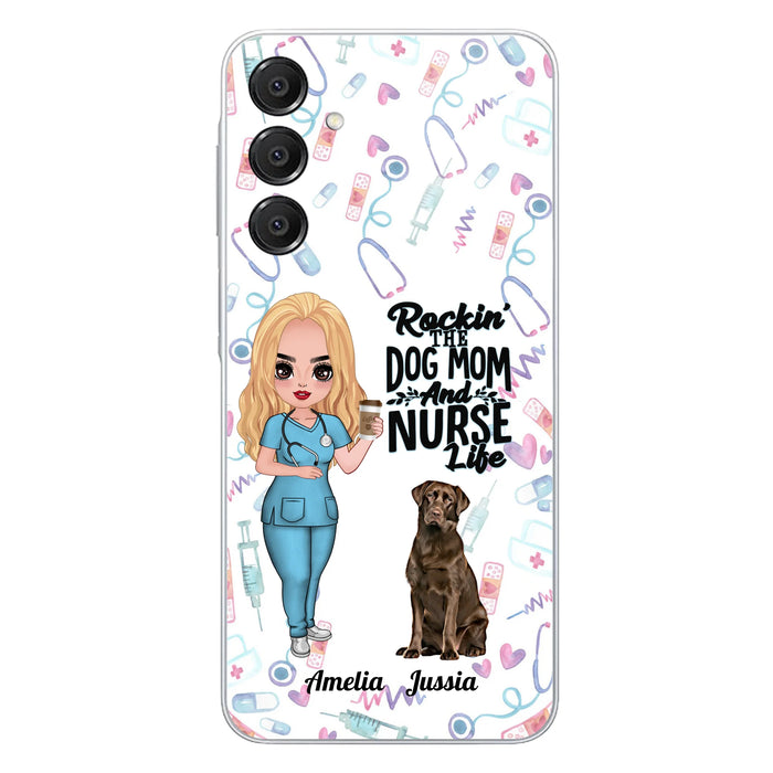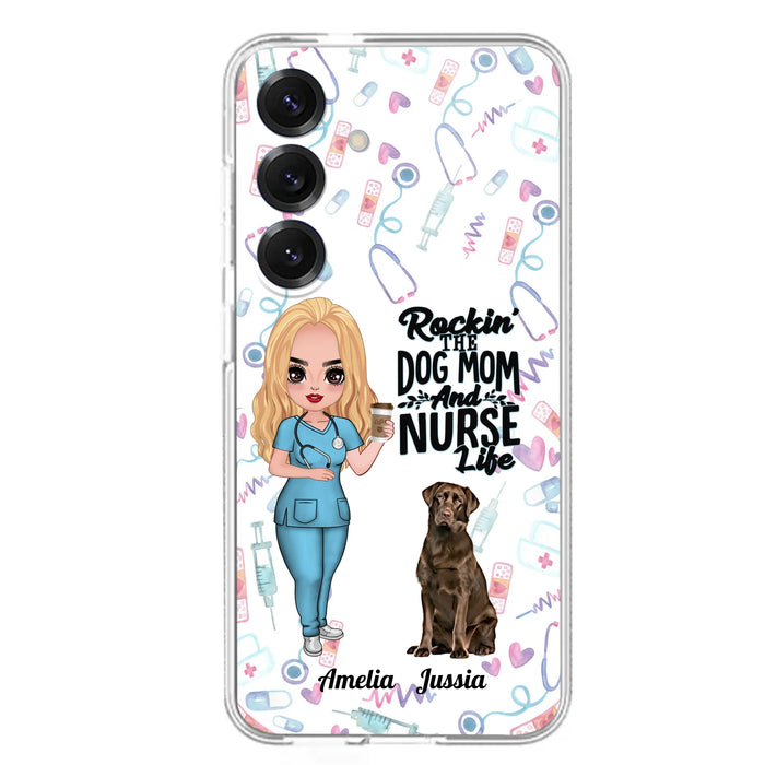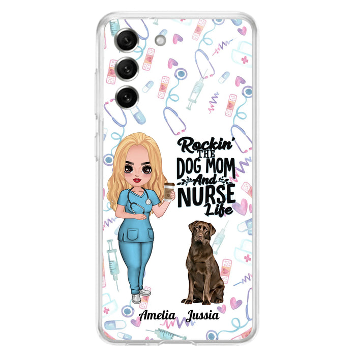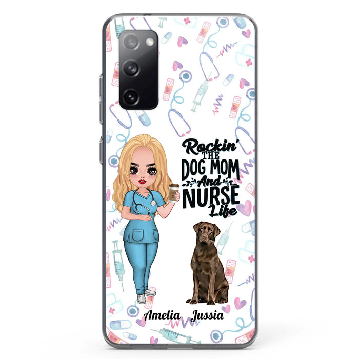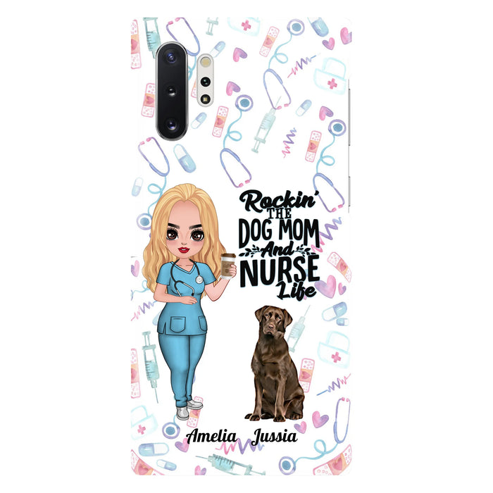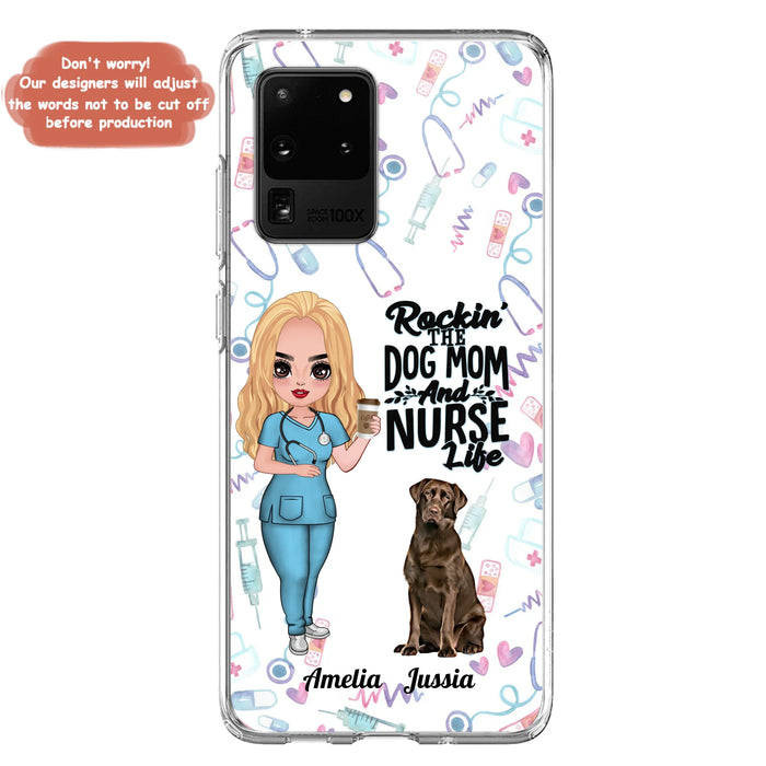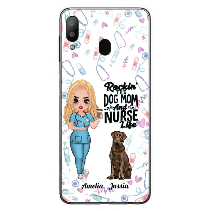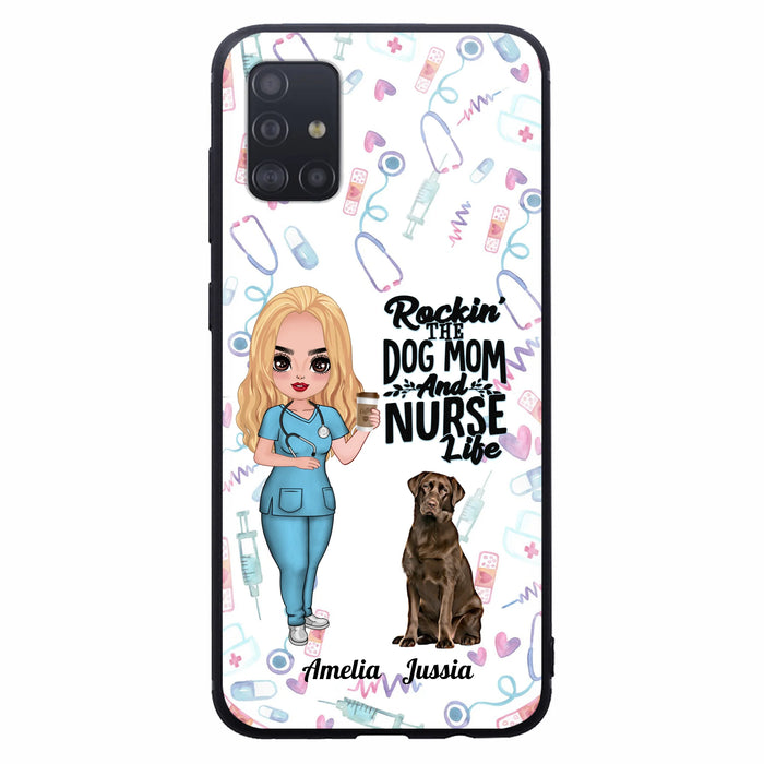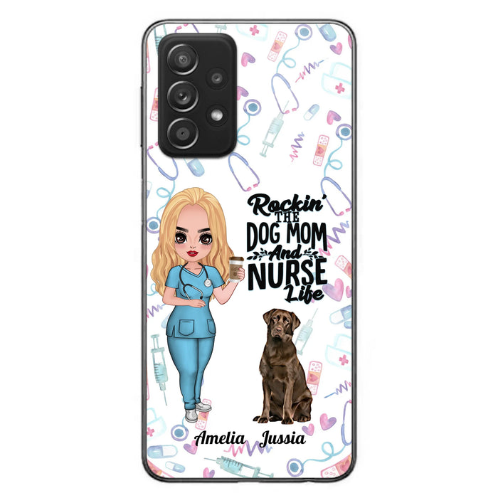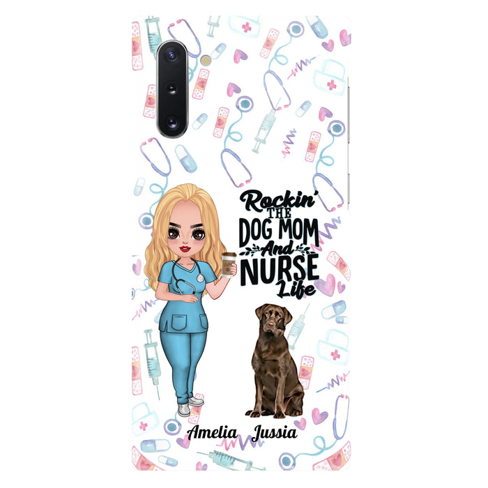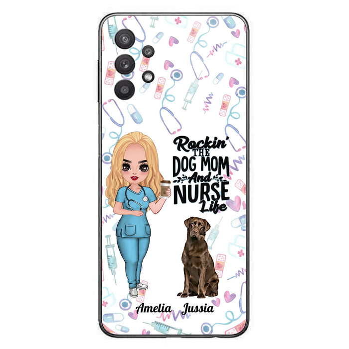 Custom Personalized Nurse Dog Mom Phone Case - Upto 5 Dogs - Gift Idea For Dog Lover - Rockin' The Dog Mom And Nurse Life - Case For iPhone And Samsung