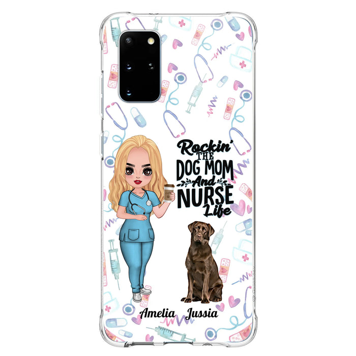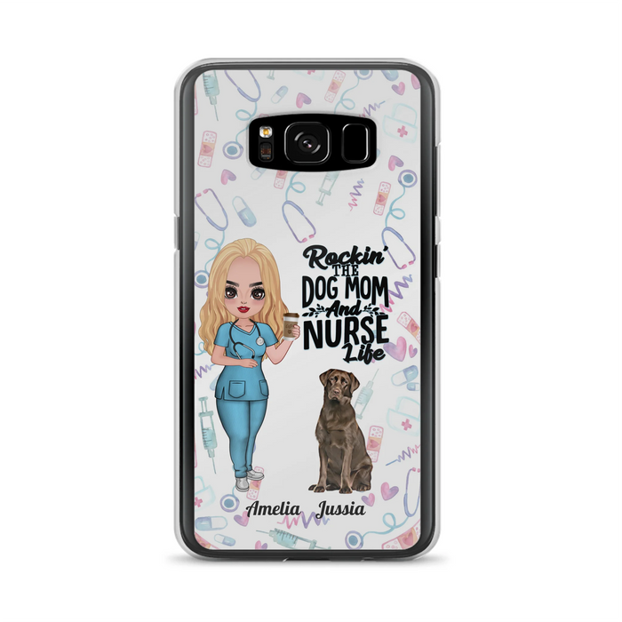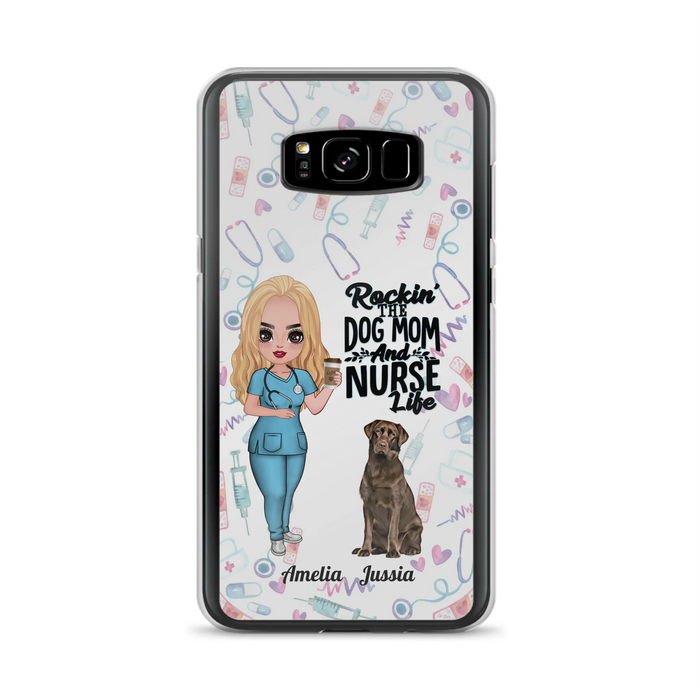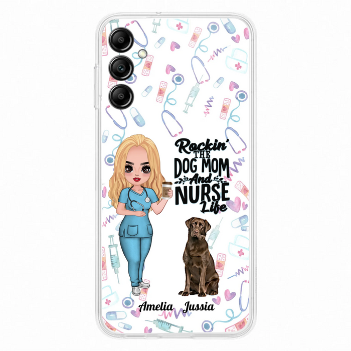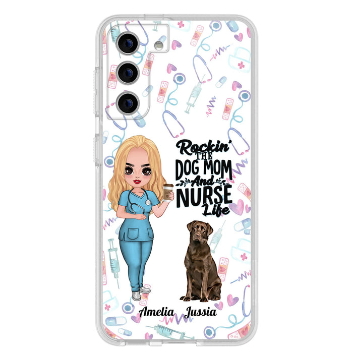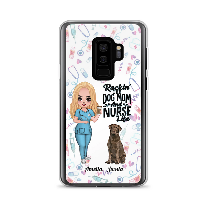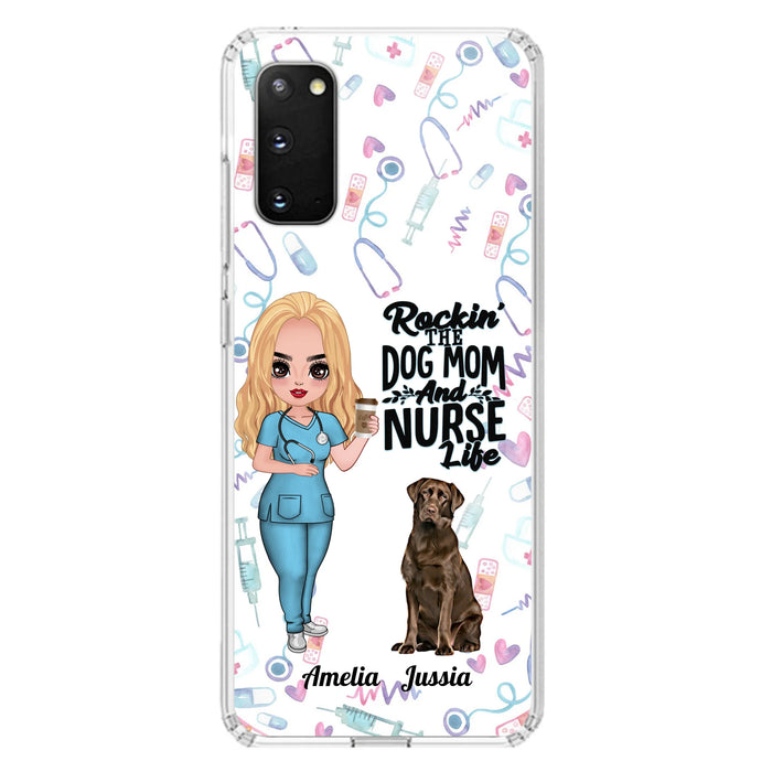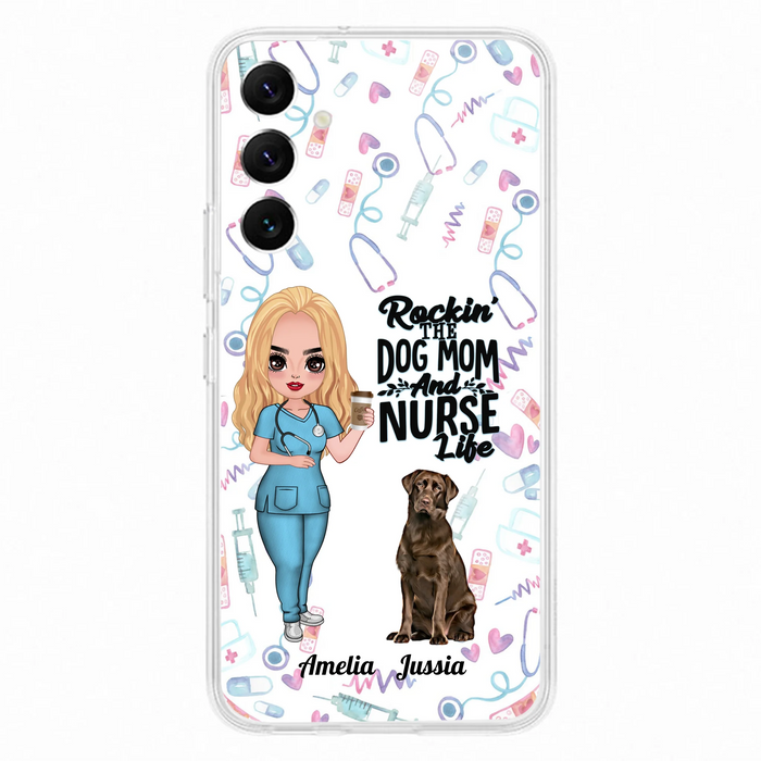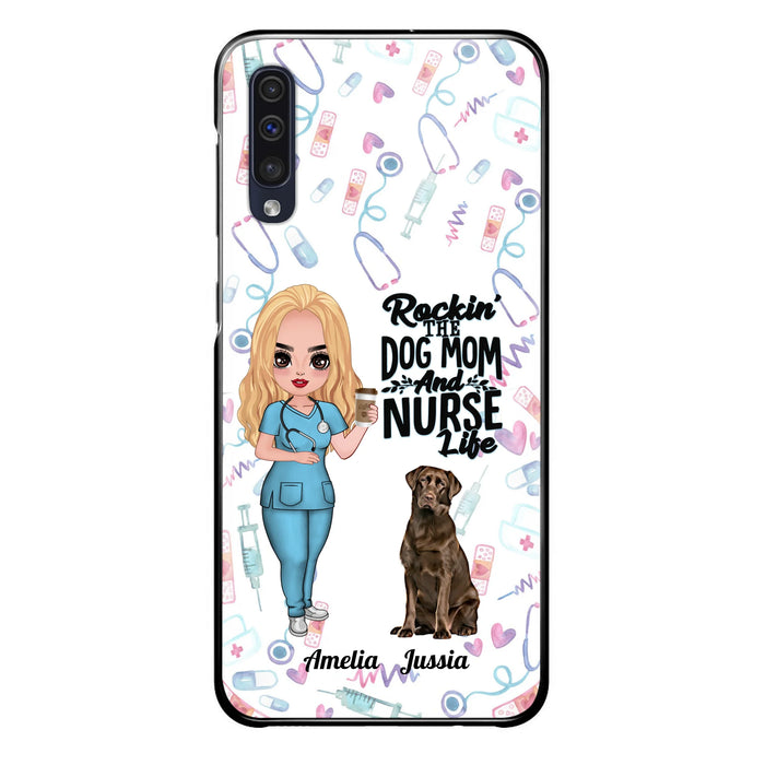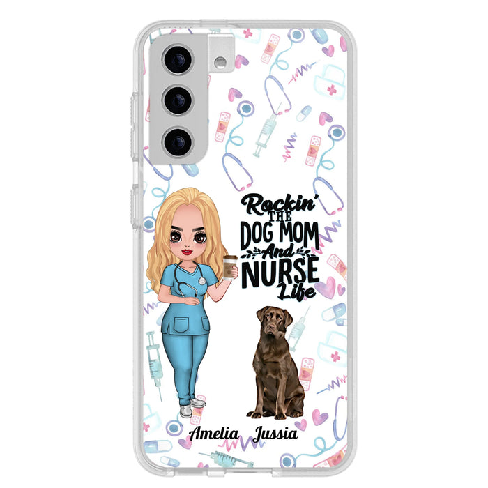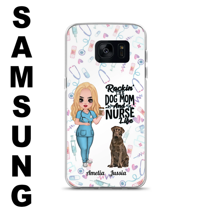 Custom Personalized Nurse Dog Mom Phone Case - Upto 5 Dogs - Gift Idea For Dog Lover - Rockin' The Dog Mom And Nurse Life - Case For iPhone And Samsung