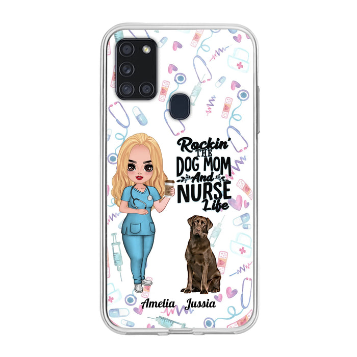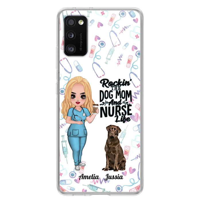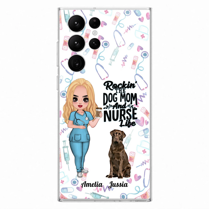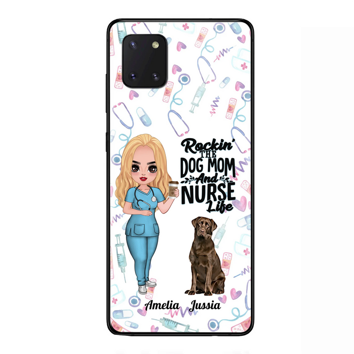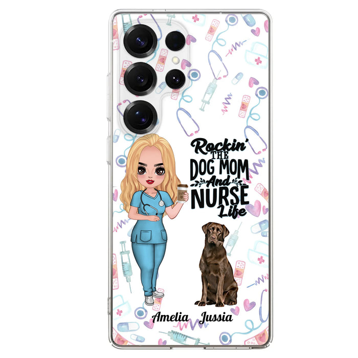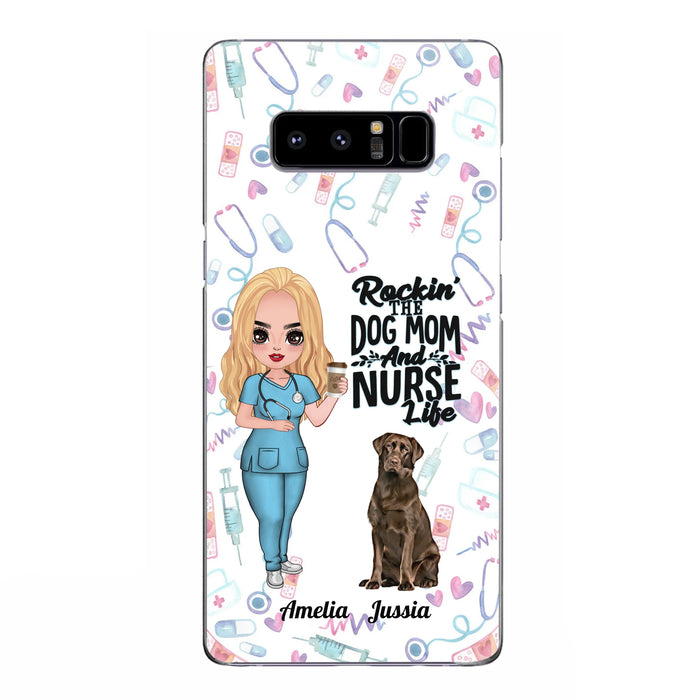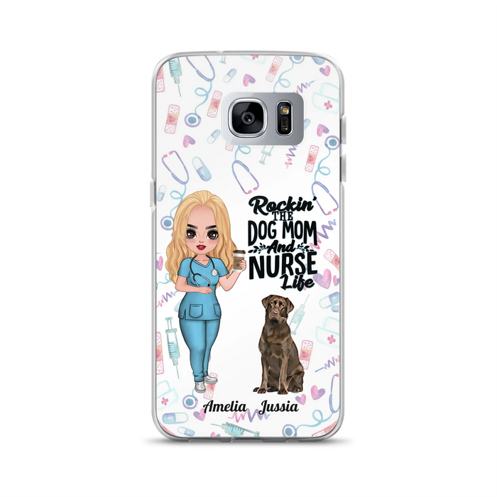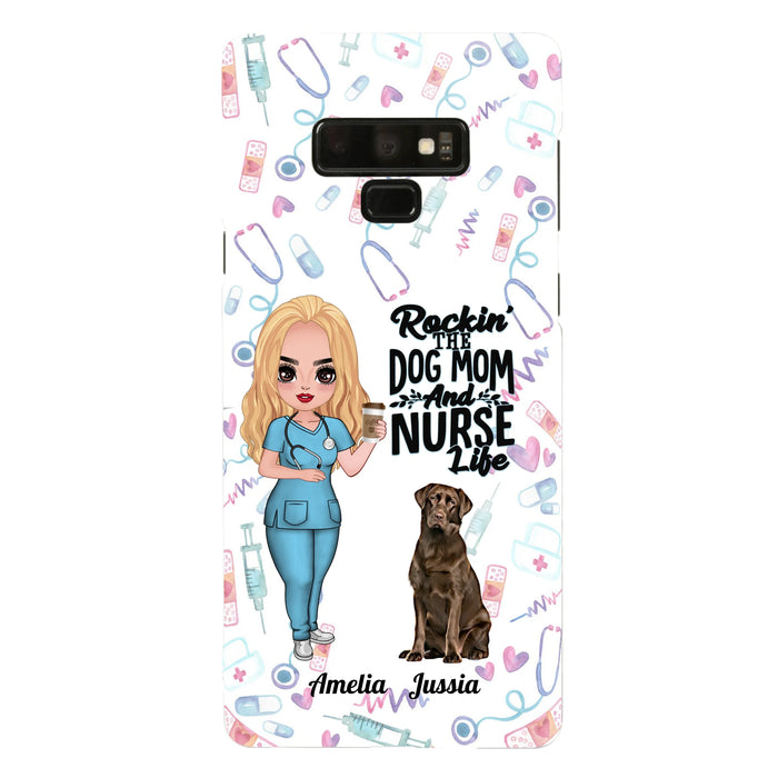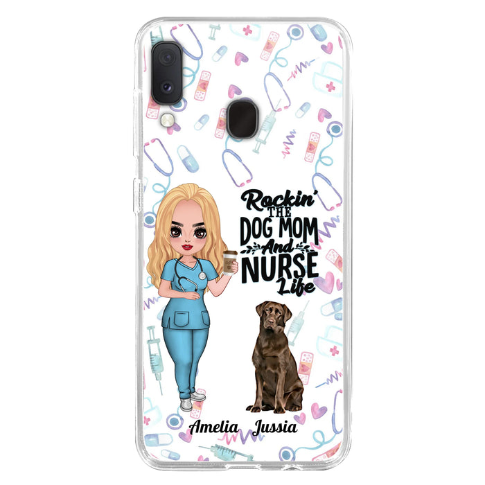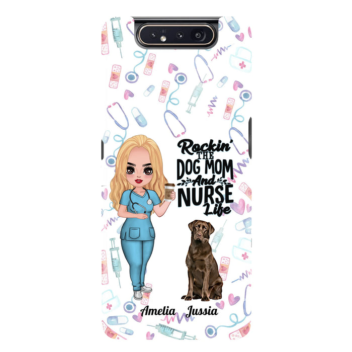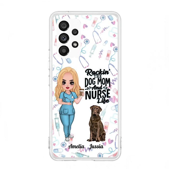 Custom Personalized Nurse Dog Mom Phone Case - Upto 5 Dogs - Gift Idea For Dog Lover - Rockin' The Dog Mom And Nurse Life - Case For iPhone And Samsung