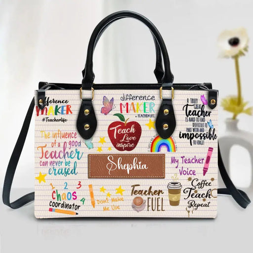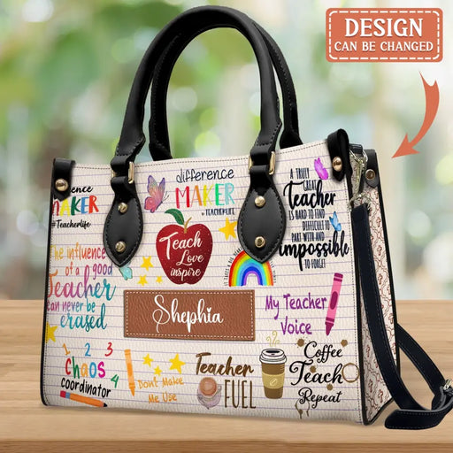 Personalized Teacher Leather Handbag With Long Straps - Gift Idea For Teacher - Teach Love Inspire
