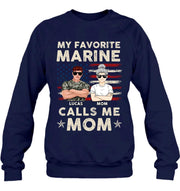 Personalized Veteran Mom T-Shirt/Long Sleeve/Sweatshirt/Hoodie - Mother's Day Gift Idea For Veteran's Mom - My Favorite Marine Calls Me Mom