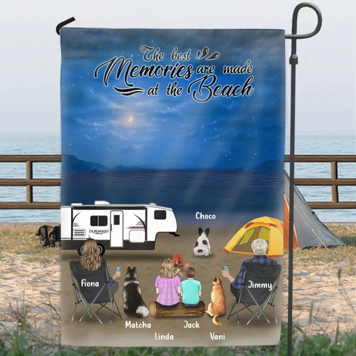 Personalized Beach Camping Garden Flag - Custom Gift for Families, Up to 4 Kids & 2 Pets Bring the beach vibes to your campsite with this Perso...