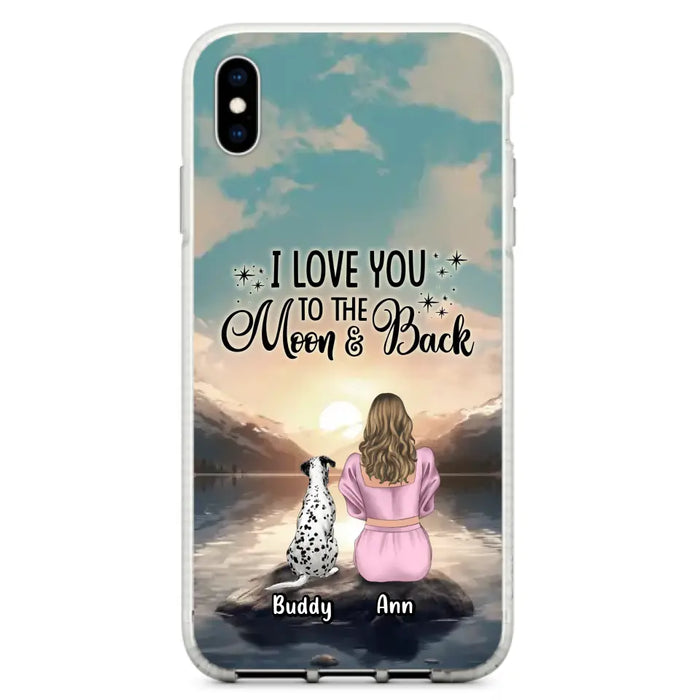 Custom Personalized Dog Mom Phone Case - Upto 6 Dogs - Gift Idea for Dog Lovers - I Love You To The Moon & Back - Case for iPhone/Samsung