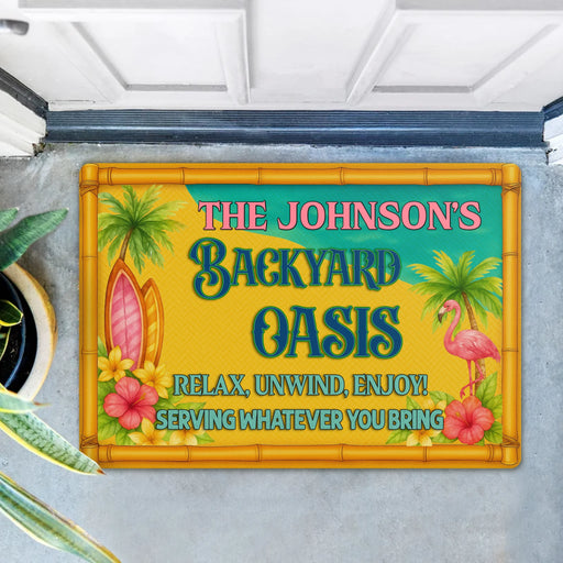 Personalized Backyard Oasis Doormat - Tropical Welcome Mat - Relax Unwind Enjoy