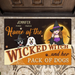 Personalized Halloween Witch Dog Doormat - Gift Idea For Family/Pet Lover - Up to 7 Dogs - Home Of The Wicked Witch And Her Pack Of Dogs