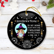 Custom Personalized Witch Home Circle Ornament - Gift Idea For Halloween - Jennifer's Home, In My Home Filled With Care I Welcome Water, Earth, Fire, Air
