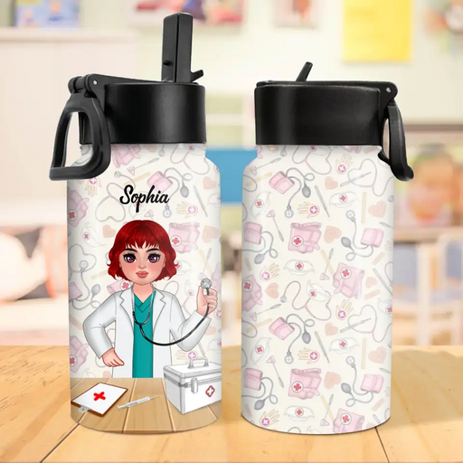 Personalized Doctor Kid Water Bottle With Straw Lid - Gift Idea For Your Kid/Back To School