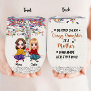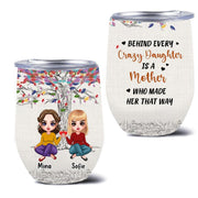 Personalized Mom & Daughters Wine Tumbler - Gift Idea For Mother's Day From Daughter - Up to 3 Daughters - Behind Every Crazy Daughter Is A Mother Who Made Her That Way