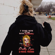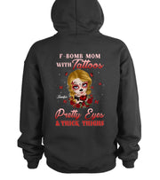 Personalized F-Bomb Mom T-shirt/ Long Sleeve/ Sweatshirt/ Hoodie - Birthday Gift / Mother's Day Gift Idea - F-Bomb Mom With Tattoos Pretty Eyes & Thick Thighs