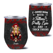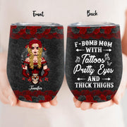 Personalized F-Bomb Mom Wine Tumbler - Birthday/Mother's Day Gift Idea - F-Bomb Mom With Tattoos Pretty Eyes & Thick Thighs