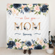 Personalized Floral Mom Fleece Throw Blanket/Quilt - Up to 5 Kids - Gift Idea For Mother's Day - We Love You