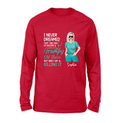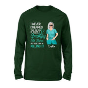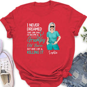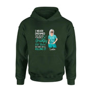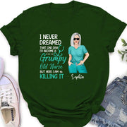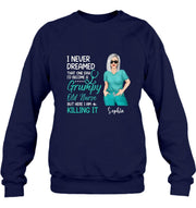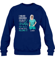 Personalized Grumpy Old Nurse Shirt/Hoodie - Gift For Nurse/Mother's Day Gift - I Never Dreamed That One Day I'd Become A Grumpy Old Nurse, But Here I Am Killing It