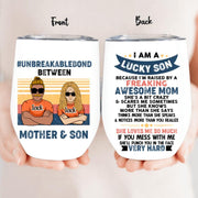 Personalized Mother & Son/Daughter Wine Tumbler - Gift Idea For Mother's Day/Son/Daughter - I Am A Lucky Son Because I'm Raised By A Freaking Awesome Mom